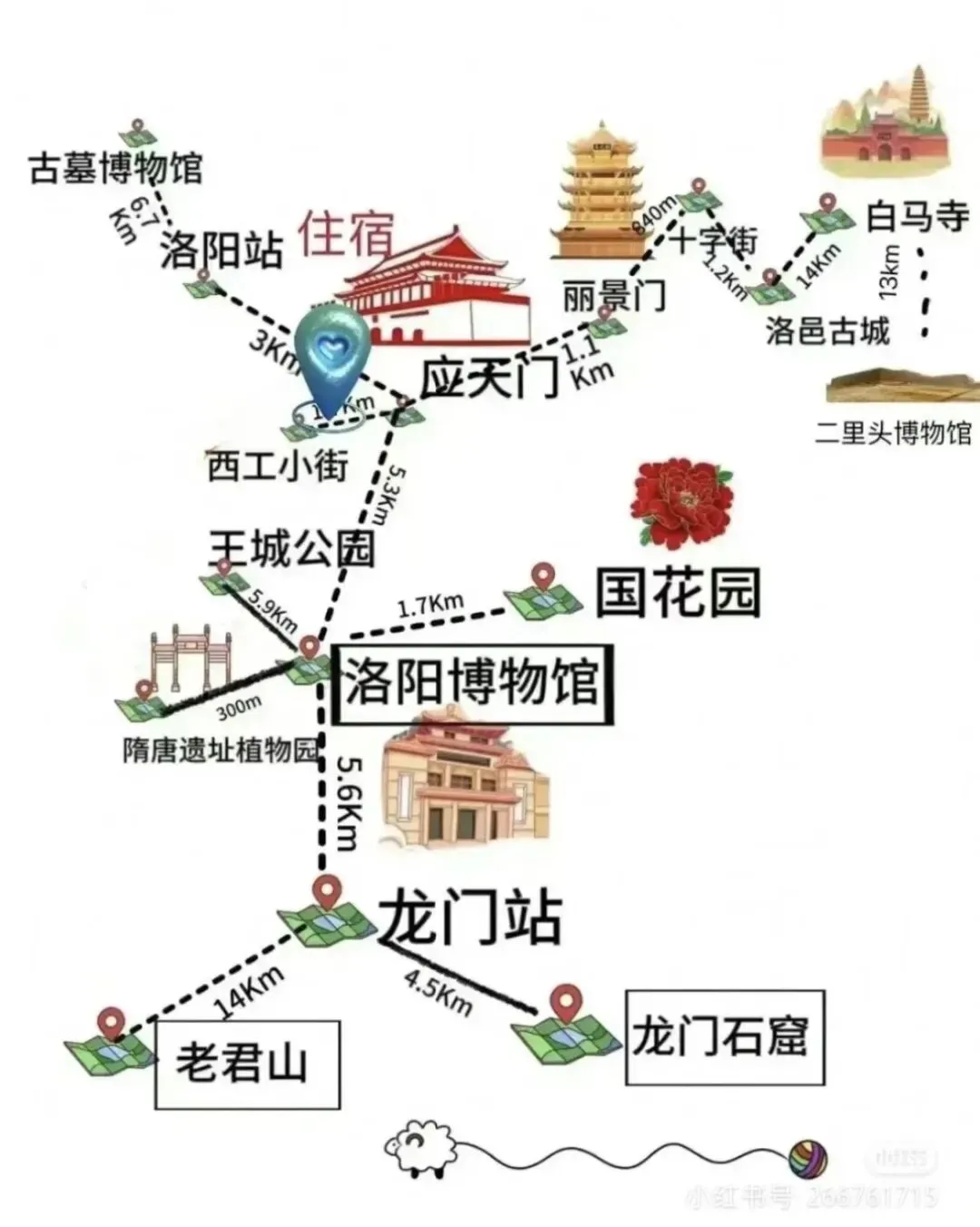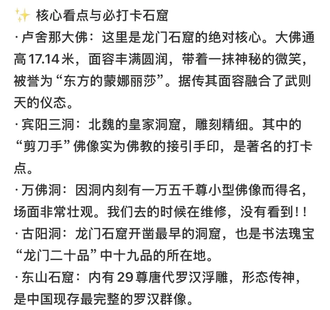 从龙门石窟返程后,我在洛邑古城附近下车。当时实在太累了,拖着行李箱行动不便,便没有入园游览。回到酒店后才后悔,应该先把行李寄存起来,好好逛逛洛邑古城的。原本计划游览的应天门、明堂天堂等景点,也因为疲惫和时间紧张没能前往——不过这类仿古建筑我也有些审美疲劳,倒也不算太大的遗憾。