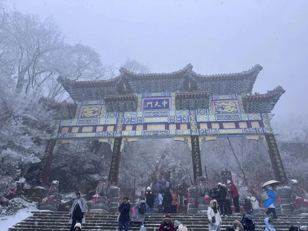 虽说大家都觉得雪后第二天景色更佳,能看到日出、云海和雾凇,但能亲身感受雪中爬山,我已经很满足了。其实元旦期间不少名山都下了雪,想来景致也相差无几。老君山不算难爬,要是不想费力,多花80元坐第二道索道就能轻松登顶,不过可能会错过不少沿途风光。