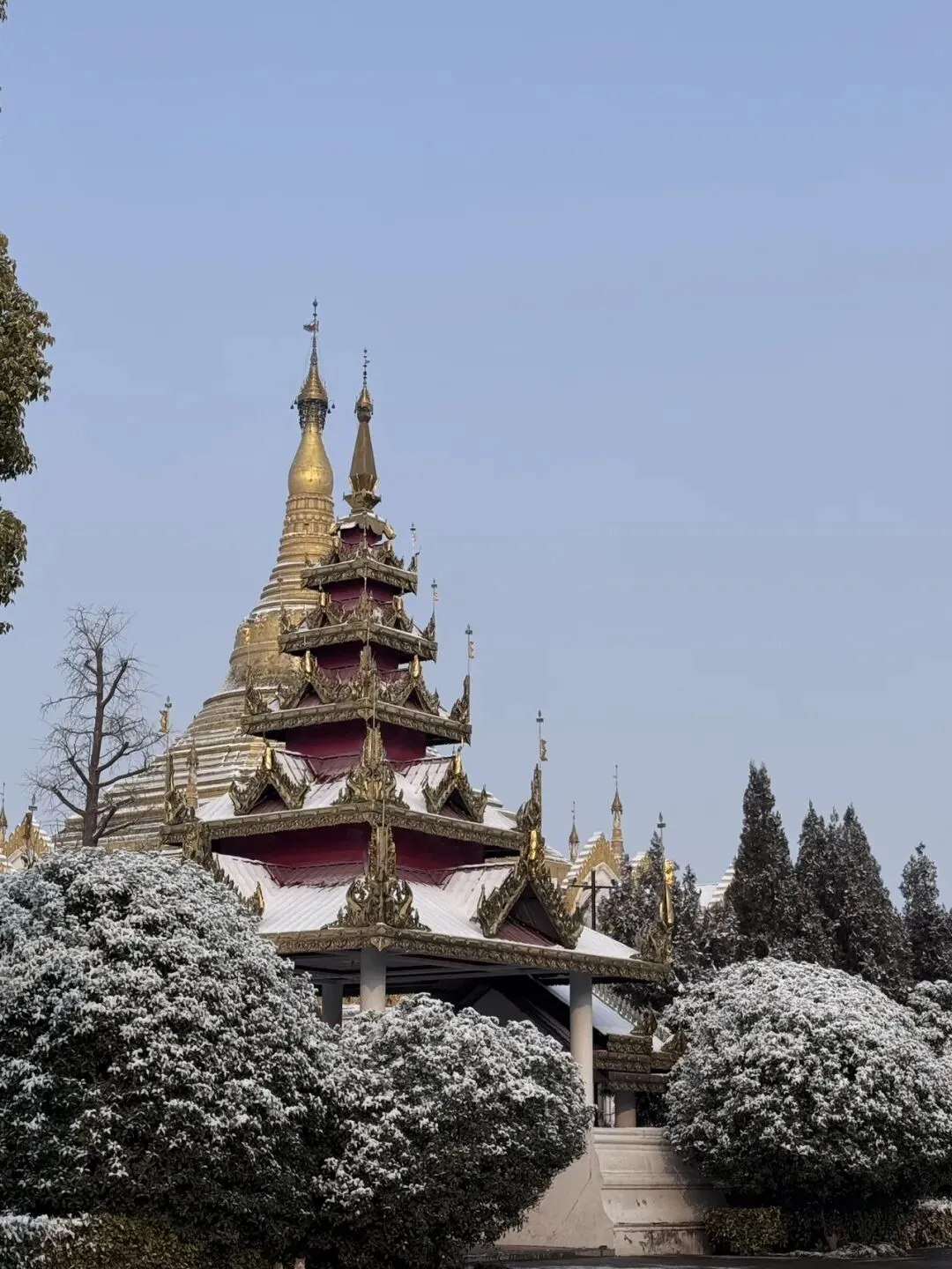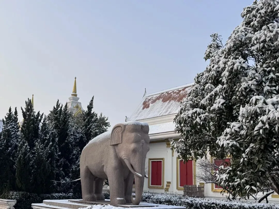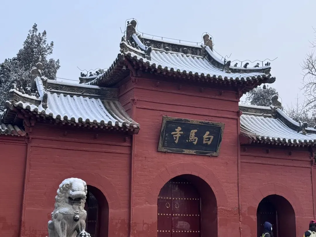 一进山门,就看到工作人员正在努力撒盐化雪,不得不感慨景区管理很用心。走进白马寺,先经过几座大殿,往后走就能发现它的独特之处:藏经阁下方正在举办画展(展出的雪中村庄题材画作我虽不太能欣赏,感觉每幅都很相似),旁边还有止语茶舍可以喝一碗热茶,园内还有一座博物馆,详细介绍了白马寺的由来、部分馆藏以及佛教相关知识。此外,白马寺的国际寺庙群也很有特色,可以参观泰国、缅甸、印度等不同风格的佛教建筑。