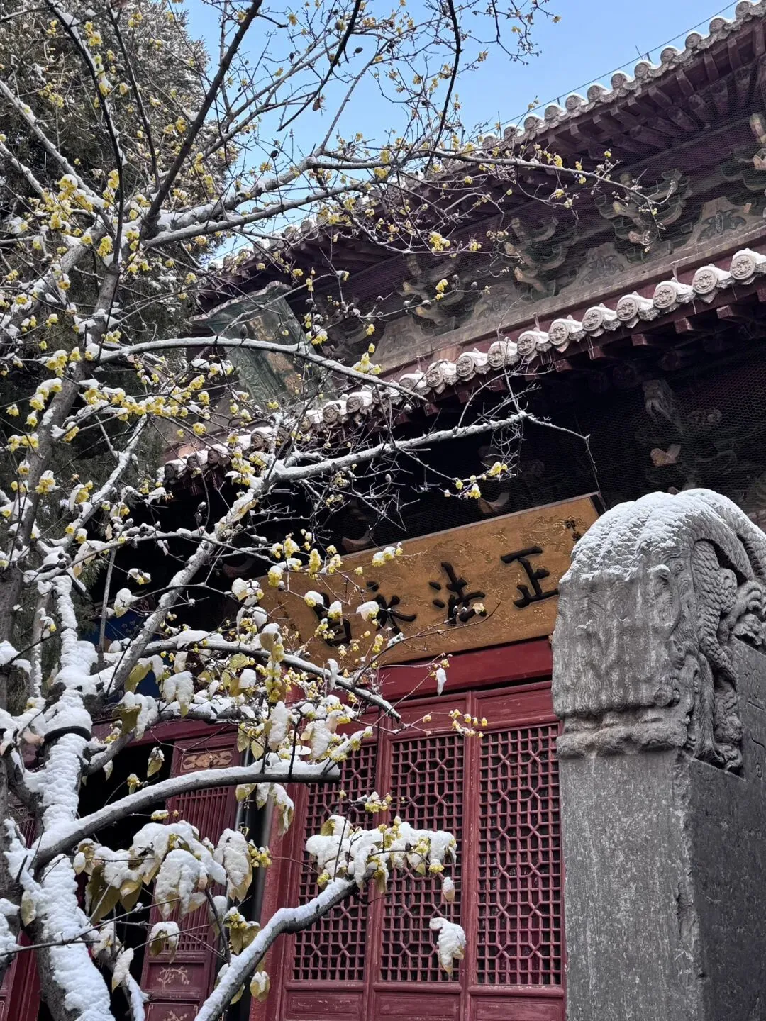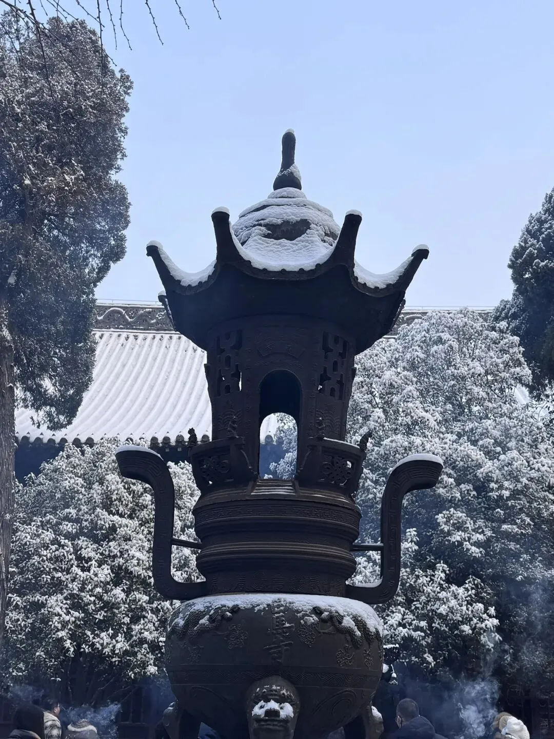 我在洛阳站附近的公交站搭乘公交车,一个多小时后直达白马寺。途中看到路边的绿植上都覆盖着一层白雪,格外漂亮。我是早上第一批进入白马寺的游客,园内游客不多,有不少本地人赶在新年第一天来上香。我没有买香,在我看来,白马寺与其说是佛教圣地,不如说是历史的见证者——从汉代永平年间初建,到唐代走向兴盛,它早已成为承载历史的文化符号。