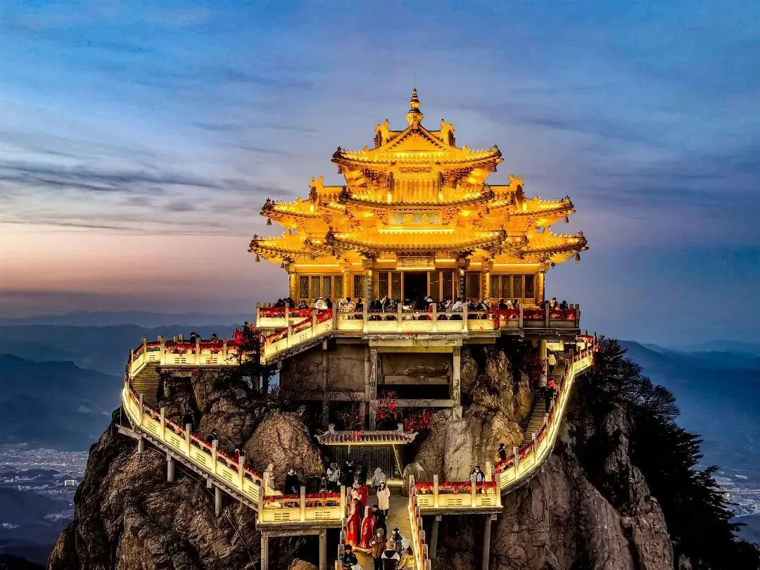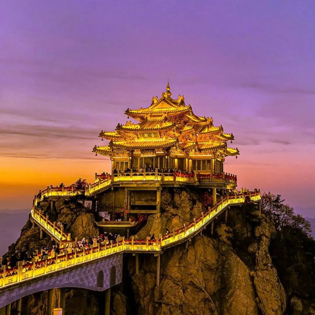 当夜幕降临,老君山就开始了它的华丽变身,亮灯那一刻,仿佛时间都为其停驻,整个金顶沉浸在一片璀璨的光芒之中,相信你一定会被眼前的景象所震撼!洛阳,十三朝古都,拥有5000多年文明史、4000多年城市史,1500多年建都史的历史文化名城,华夏民族的祖根文脉,自夏代开始,中国朝代的更迭从这里拉开。「神都」的得名,来自武则天,公元684年,武则天临朝,改东都洛阳为“神都”,称帝后,将洛阳定为首都。“若问古今兴衰事,请君只看洛阳城。”