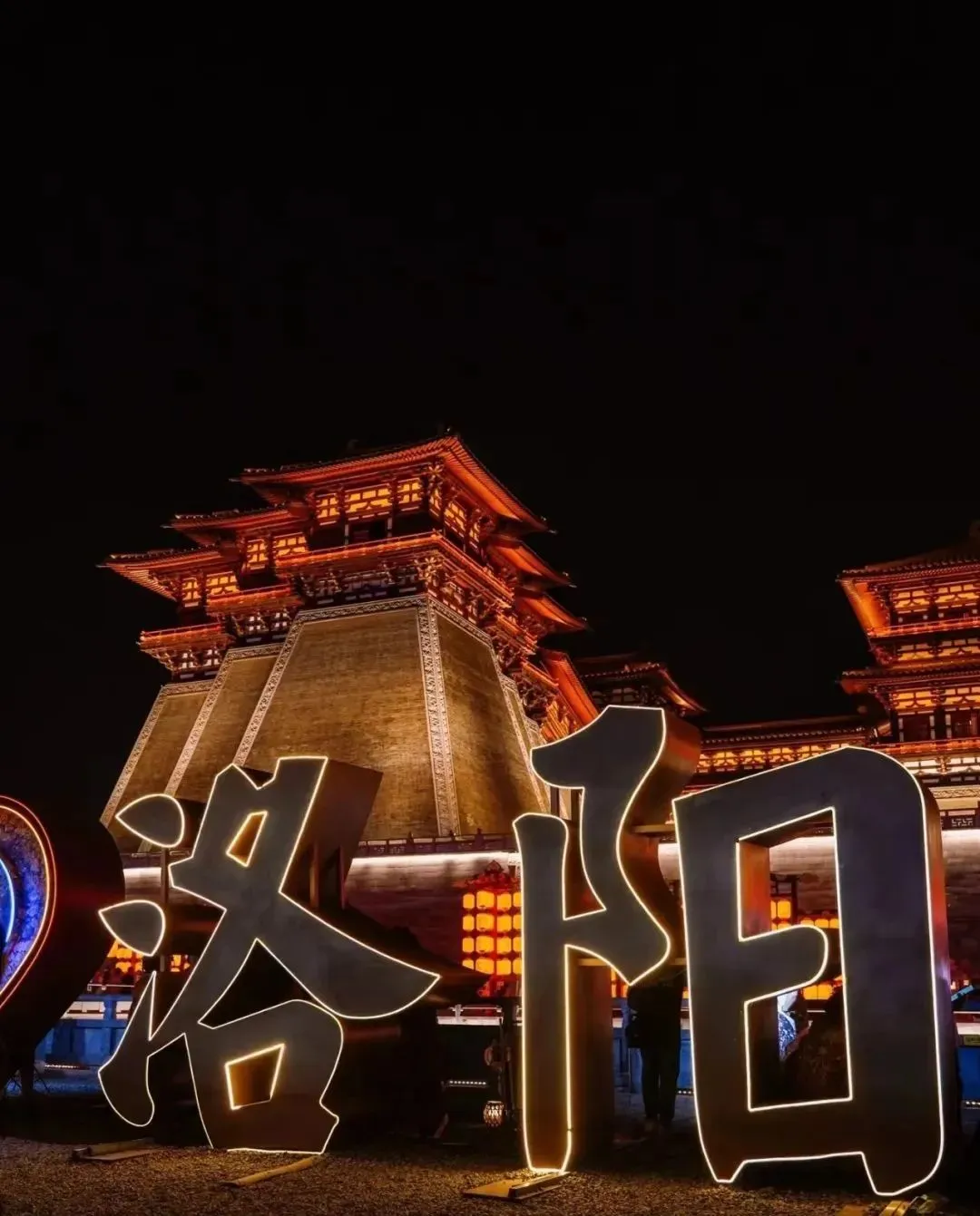 游览【丽景门】夜景,丽景门始建于隋朝,整个丽景门景区由城门楼、瓮城、箭楼、城墙和丽景桥(古时为吊桥),护城河等部分组成,其城垣高厚,月城宏阔,重门叠关,上干浮云,气势磅礴,成为洛阳老城历史文化古城街区的龙头。成为洛阳古城历史文化最具特色的标志之一,并且被评为洛阳八景之一。