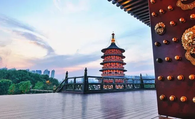 如今已建成的九洲池遗址以宏大与深邃、人力与苍古、水泉与眺望的园林建造手法,引黄河之水,形成“纳千倾之汪洋,收四时之烂漫”的景观,是集遗址展示、园林艺术、牡丹观赏、娱乐休闲于一体的文化空间。不去隋唐洛阳城,不知何为神都洛阳。夜幕下的隋唐洛阳城,才真正显露出他最本真的模样。古建筑依次点亮,流光溢彩,展现着一眼千年的盛唐风采。此时,络绎不绝的人群中,华美汉服频现,衣袂飘飘、人声鼎沸,这才是千年前的大唐人间啊!丽景门 | 不到丽景门,枉来洛阳城