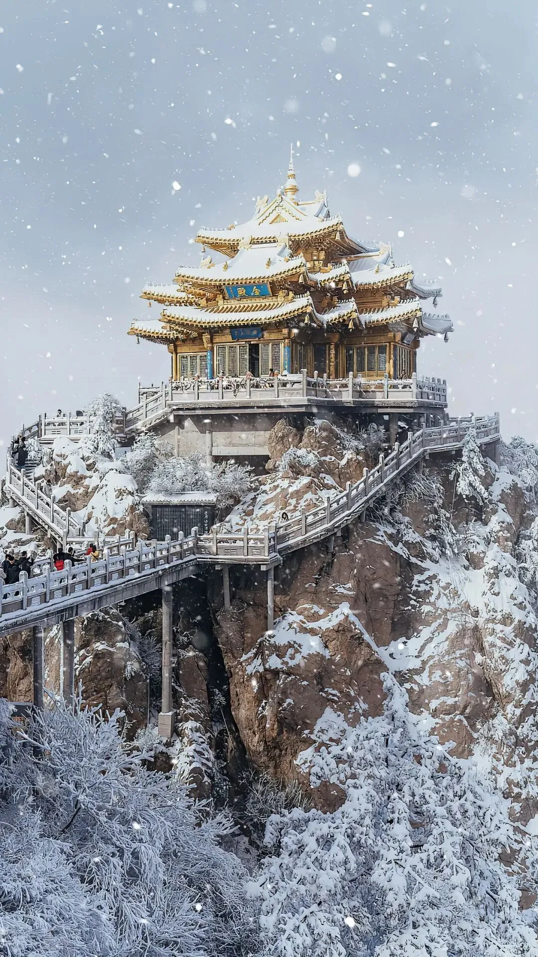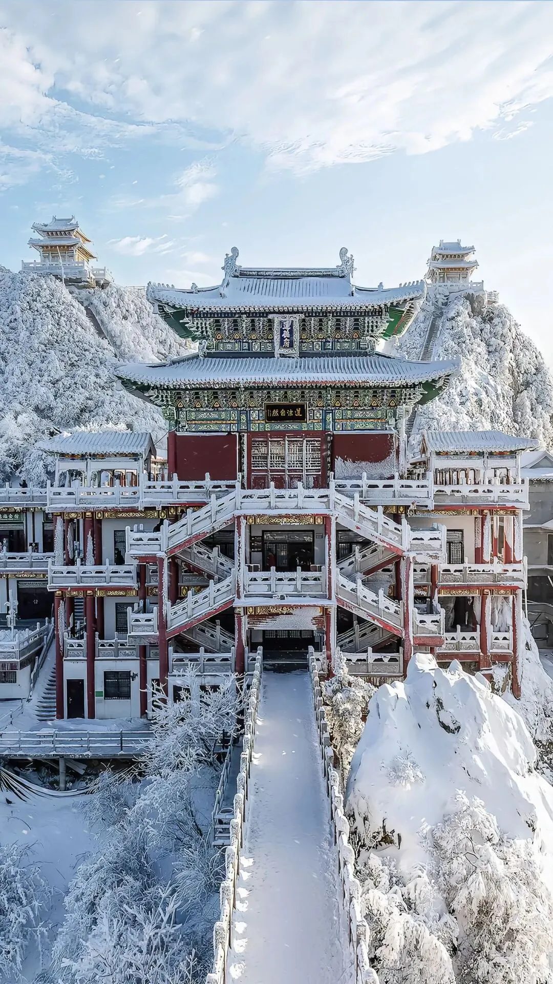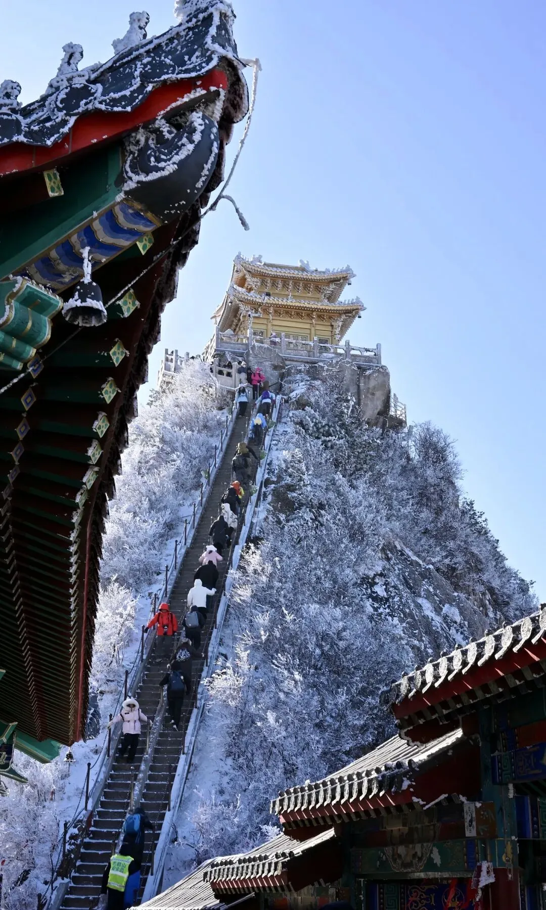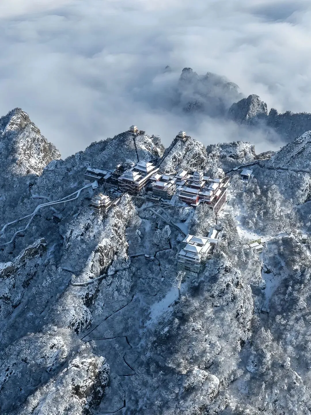 云雾在山巅翻涌,阳光穿透云层洒在金殿之上,2217米的海拔让这里成为离天最近的“道场”。