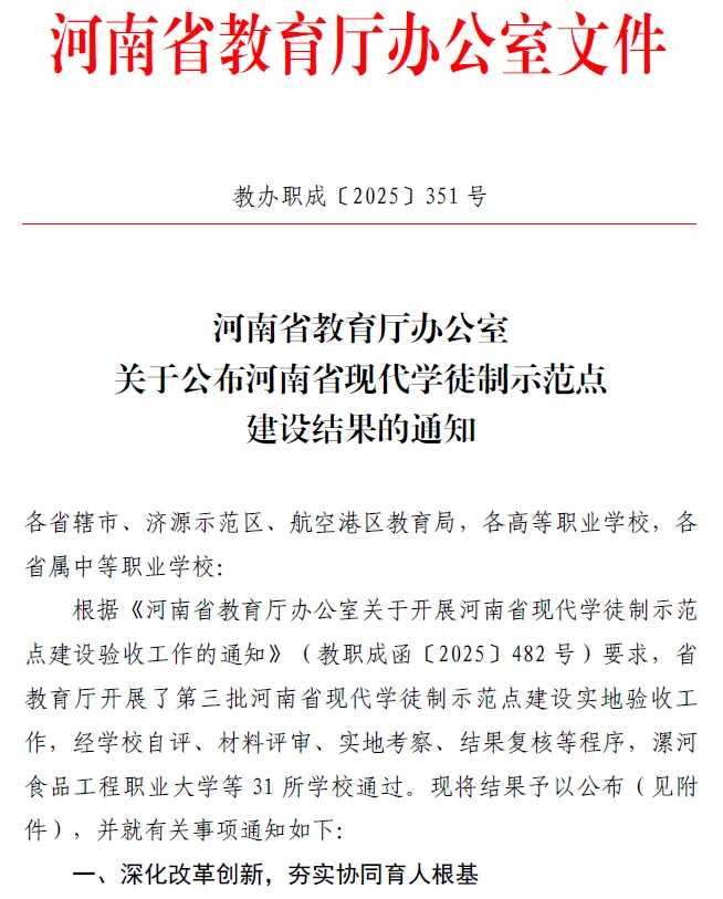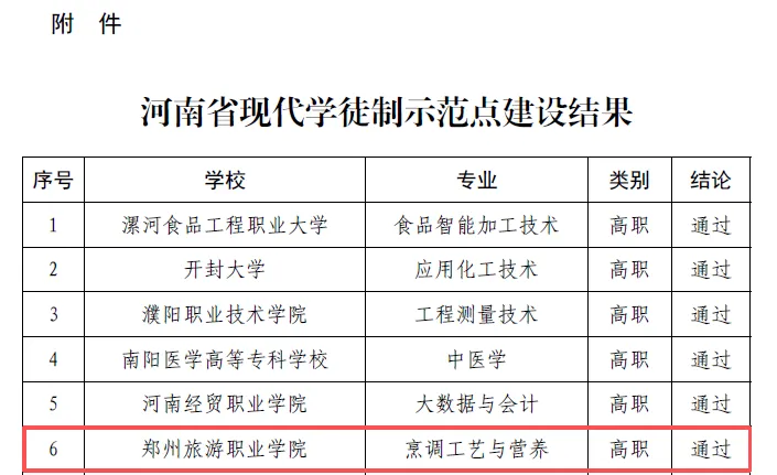 近日,河南省教育厅办公室发布《关于公布河南省现代学徒制示范点建设结果的通知》(教办职成〔2025〕351号),我院烹调工艺与营养专业现代学徒制项目顺利通过验收,成功入选第三批河南省现代学徒制示范点。