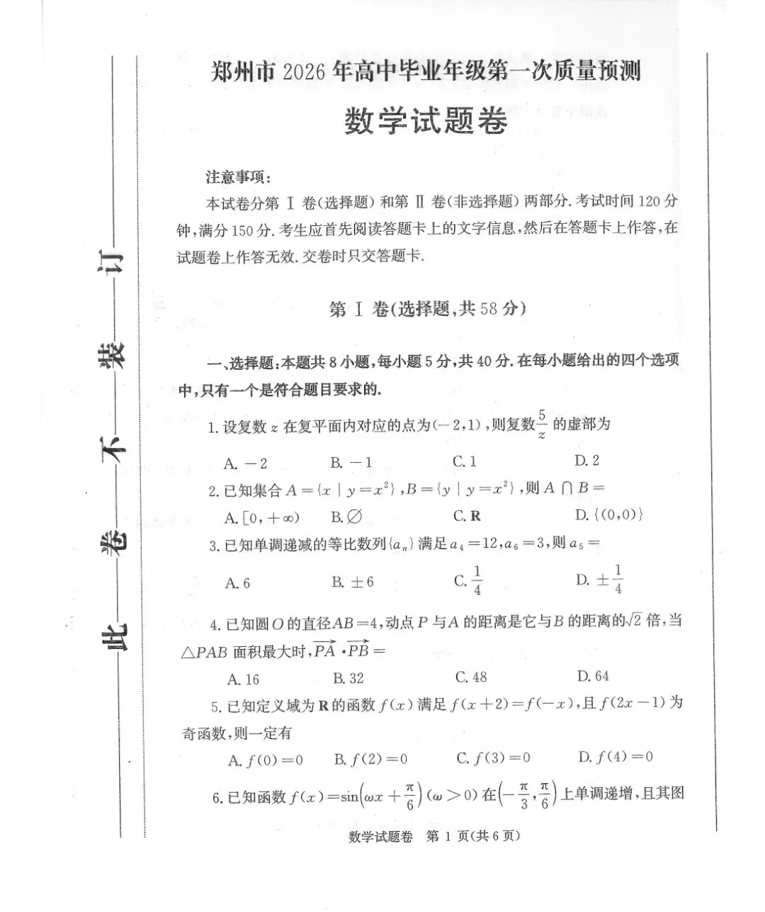 今日分享:【【郑州一模】郑州市2026年高三第一次质量预测答案】如果获得您的关注和喜爱,也请帮忙分享给更多有需要的人,您的每一次转发、点赞,都是我努力寻找、整理资源的动力!