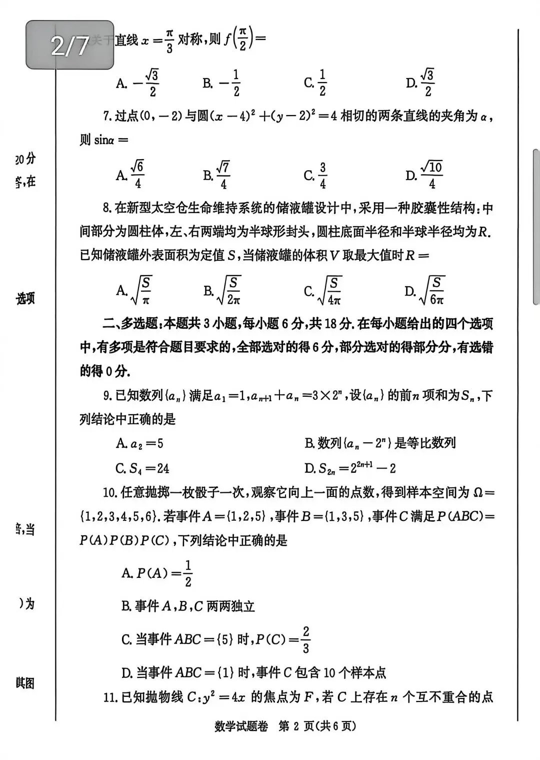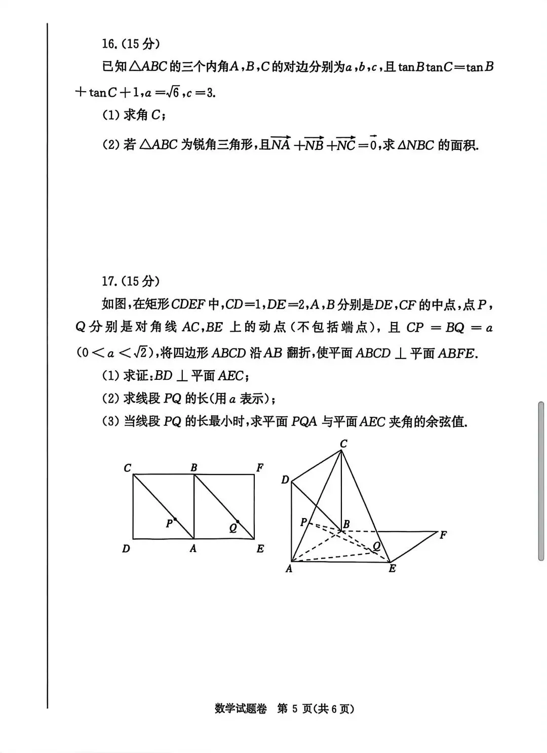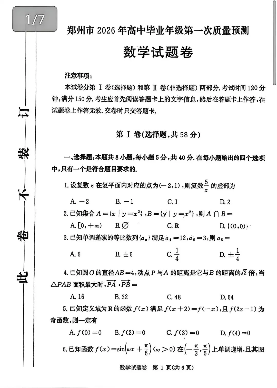 >2026年郑州一测数学试题