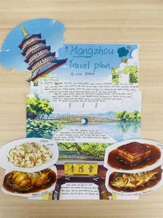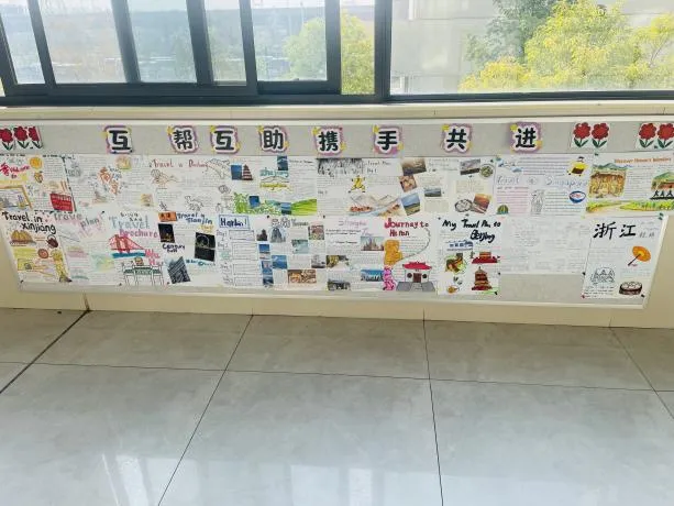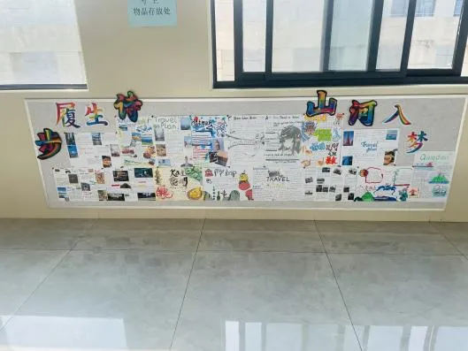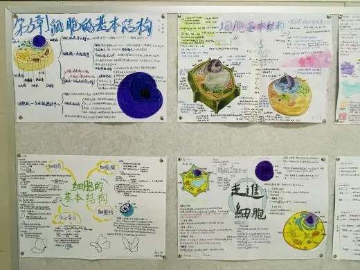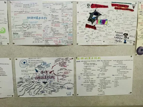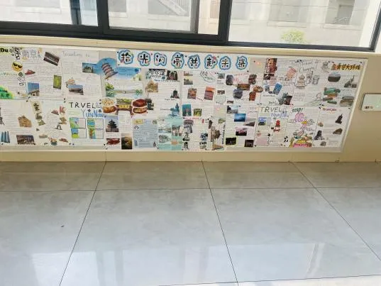语文的整本书阅读纲要脉络清晰,将经典名著的知识体系直观呈现;数学的思维导图逻辑严密,把抽象的公式定理转化为易懂的知识网络;英语的旅行规划图文并茂,洋溢着跨文化交流的热情;生物的细胞结构图与手工模型相映成趣,让微观世界变得触手可及。丰富多彩的学科展板,让长廊变身流动的知识课堂。