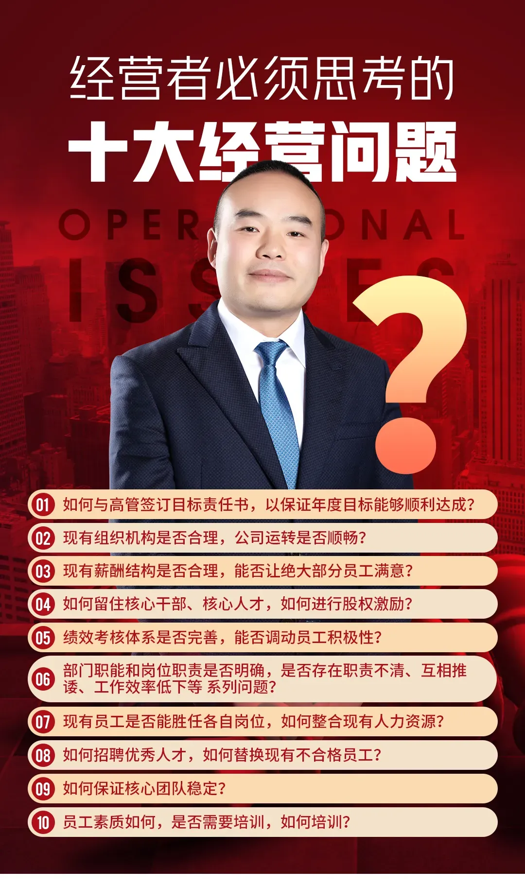 ●内容只针对企业决策层设计(董事长、总经理、总裁),请勿派其他人员参加 |