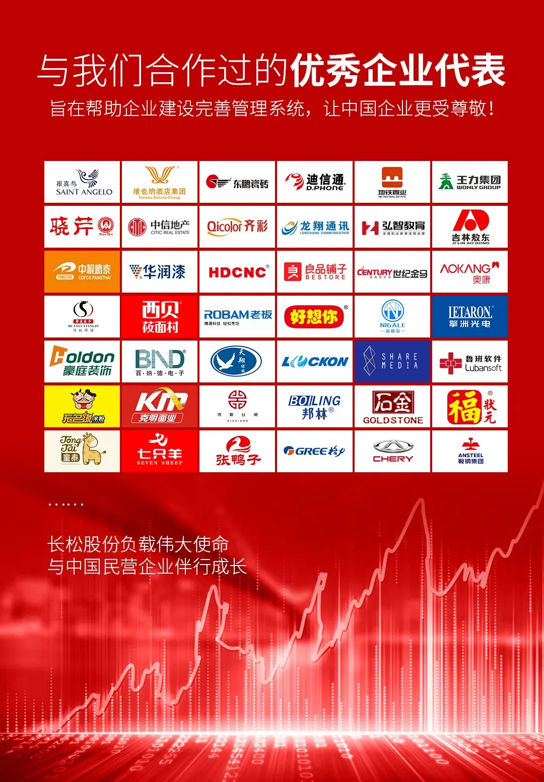在长松的帮助下已经有十几万家企业建设了完善的企业管理系统,这些客户中有您的合作伙伴也有您的竞争对手,今天领先一步明天就会遥遥领先,建设系统刻不容缓!