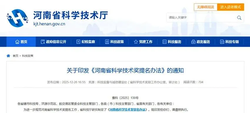为明确提名方式和提名职责,优化提名流程,河南省科技厅研究制定了《河南省科学技术奖提名办法》,进一步规范河南省科学技术奖提名工作。河南省科学技术奖实行提名制度,不受理自荐。