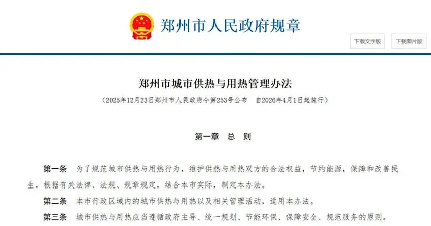 《郑州市城市供热与用热管理办法》近日正式出台,将于4月1日起施行。《办法》以法治手段规范供热与用热行为,明确各方权利义务,为保障市民温暖过冬、推动城市供热事业绿色低碳可持续发展筑牢根基。