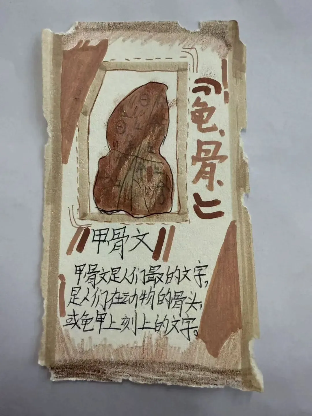 除课堂知识铺垫外,我们着力打造“行走的课堂”。周末期间,学生以小组为单位,奔赴殷墟博物馆探寻殷商文明的密码,在甲骨碑林前解读古老文字的奥秘;走进中国文字博物馆,沿着汉字演变轨迹感受文化传承的力量。考察过程中,学生们带着课前预设的问题,通过拍照记录、访谈咨询、实物采集等方式积累素材,让实践过程成为深度学习的延伸。