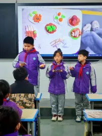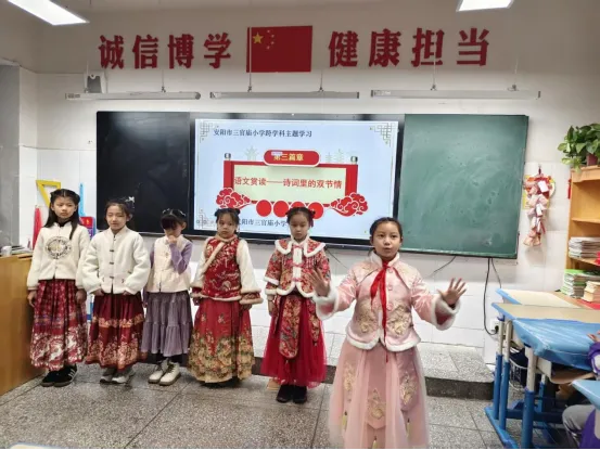 “爆竹声中一岁除,春风送暖入屠苏”,春节的热闹藏在宋诗的平仄里;“但愿人长久,千里共婵娟”,中秋的思念凝在宋词的韵味中。诗词组的小成员们化身“小小诵读者”,搜集整理了描写春节、中秋的经典古诗与童谣,还编排了“双节诗词联诵会”,从《元日》的欢喜迎新,到《十五夜望月》的寄情明月,童声朗朗间,是传统文化的种子在发芽。