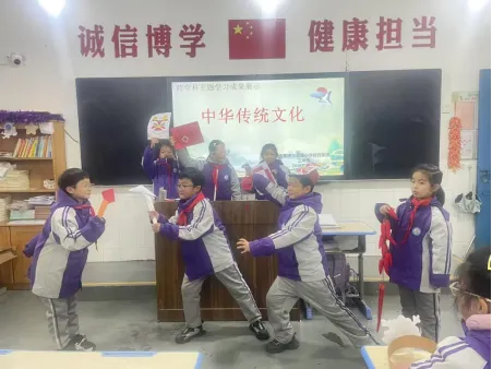 每一个传统节日里都藏着一段动人的传说。故事组的同学们化身“故事大王”,精心挑选了春节《年兽的故事》、中秋《嫦娥奔月》《玉兔捣药》三个经典传说,改编成适合三年级同学表演的童话短剧。汇报时,小演员们穿着自制的道具服装,用生动的台词和夸张的表情,把神话故事演得活灵活现。台下的小观众们听得津津有味,在笑声中记住了节日背后的文化传说。