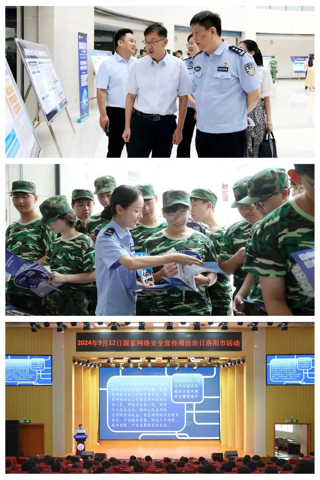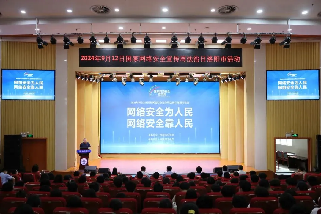9月12日,2024年国家网络安全宣传周法治日洛阳市活动启动仪式在我校王城校区图书信息中心报告厅举行。洛阳市公安局网络安全支队党总支书记、支队长孙强,党总支副书记、政委赵青,洛阳市委网信办网络安全协调科科长裴濮钰,我校党委副书记胡恩立出席活动。洛阳市公安局各城市区分局网络安全大队代表,我校党委宣传部、政治保卫部、信息化技术中心等相关部门负责同志及师生代表参加启动仪式。