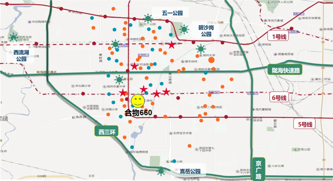 它位于郑州生活密度最高的这条“热力带”上,紧邻陇海快速路,无缝衔接地铁 5 号线、6 号线,加上9 条公交线路直达,具备极好的城市交通条件。