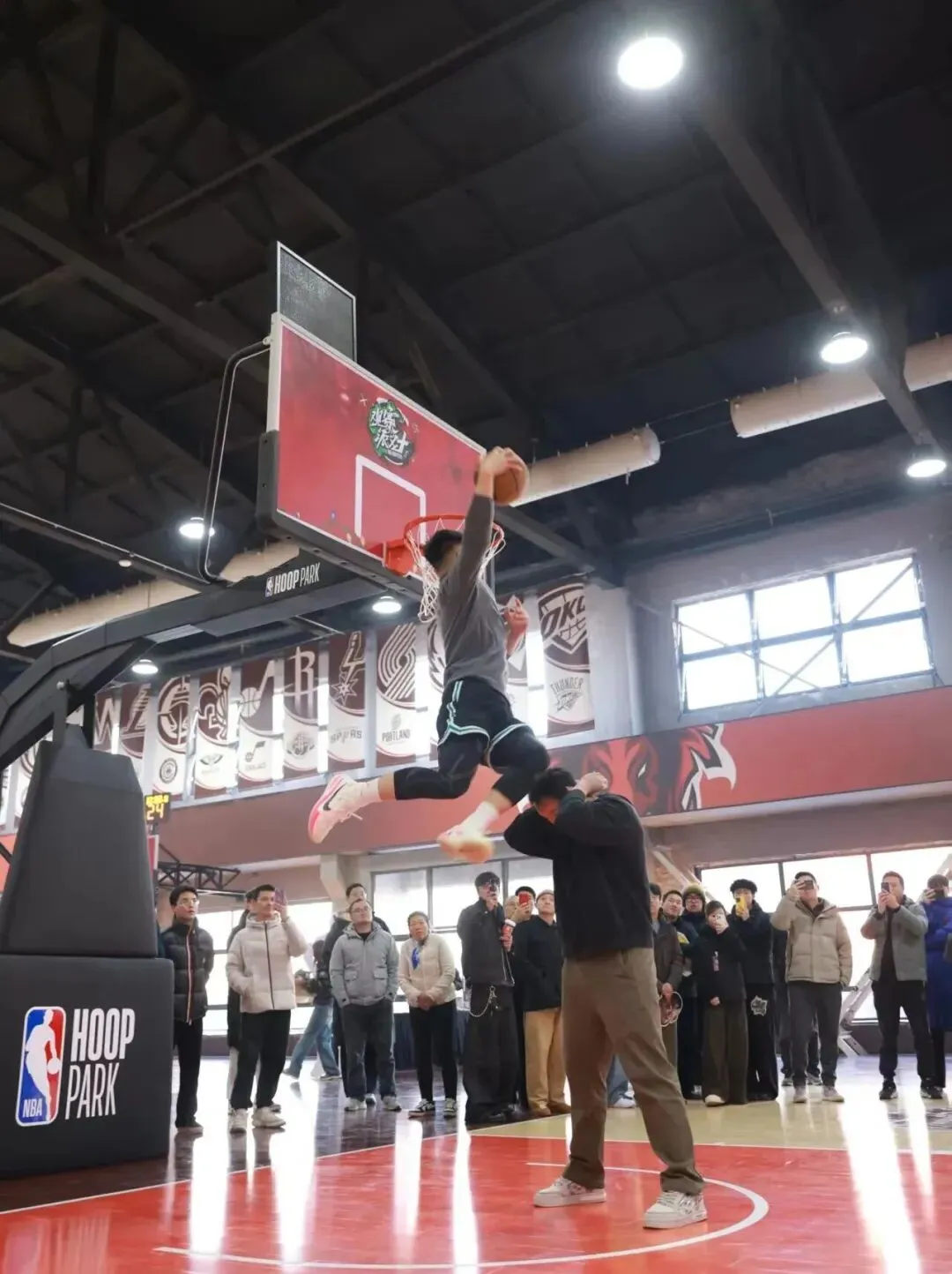 2025年12月下旬,继美术馆之后,合物660的第二个爆点来了--5000㎡ NBA HOOPPARK 篮球馆正式开放。老厂房的斑驳感,与 NBA 的潮流视觉并置,粗犷与潮流相撞,反而形成了独特的风景。
