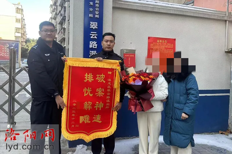 目前,宋某已被刑事拘留,此案正在进一步调查。为向办案民警表示感谢,杨女士和小刘特意送来了一面锦旗、一束鲜花和一封手写感谢信。