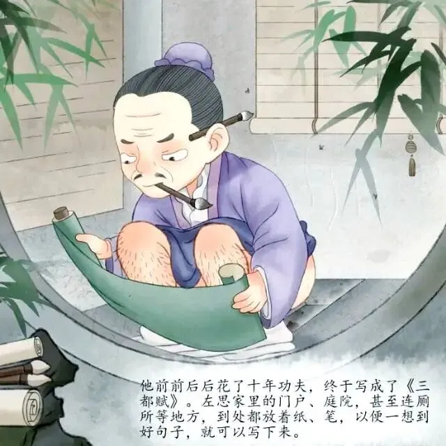 十年间,洛阳文坛风云变幻,各种辞赋层出不穷。不少文人劝左思:“别费劲了,写点应景的文章多好,又快又受欢迎。”左思只是摇摇头,继续他的考证和推敲。他在自家房间、院子里到处挂着纸条,想到什么就记下来,反复修改。他的书房,成了文字的战场。