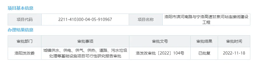 洛阳市滨河南路与宁洛高速甘泉河站连接线建设工程