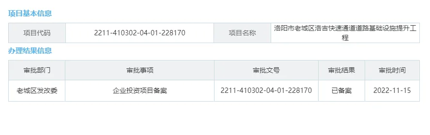 洛阳市老城区洛吉快速通道道路基础设施提升工程