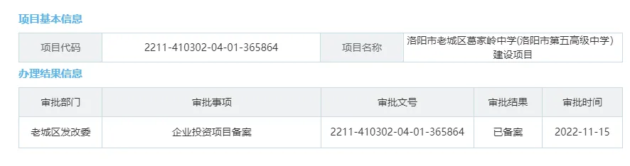洛阳市老城区葛家岭中学(洛阳市第五高级中学)建设项目