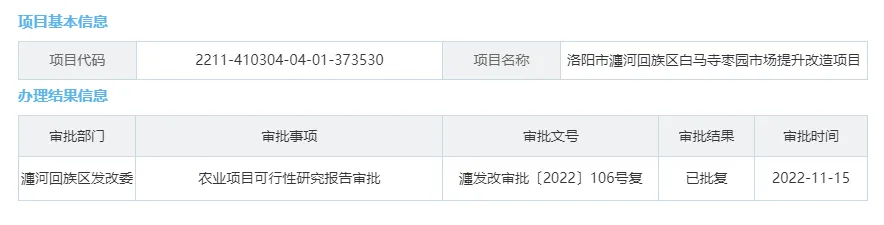 洛阳市瀍河回族区白马寺枣园市场提升改造项目
