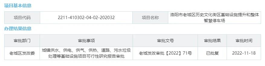洛阳市老城区历史文化街区基础设施提升和整体智慧停车场