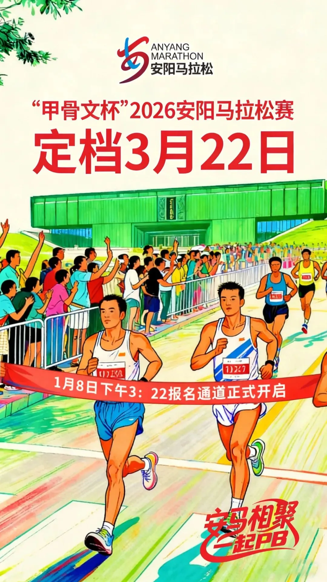 2026安阳马拉松正式官宣,赛事将于2026年3月22日(周日)开跑,赛事设半程马拉松项目,1月8日下午3点22分开启报名!