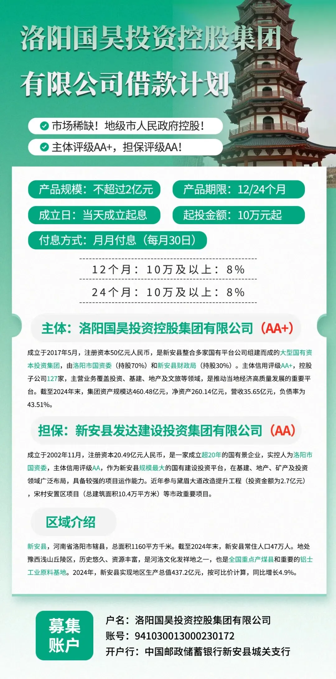 💎【洛阳国昊投资控股集团有限公司借款计划】