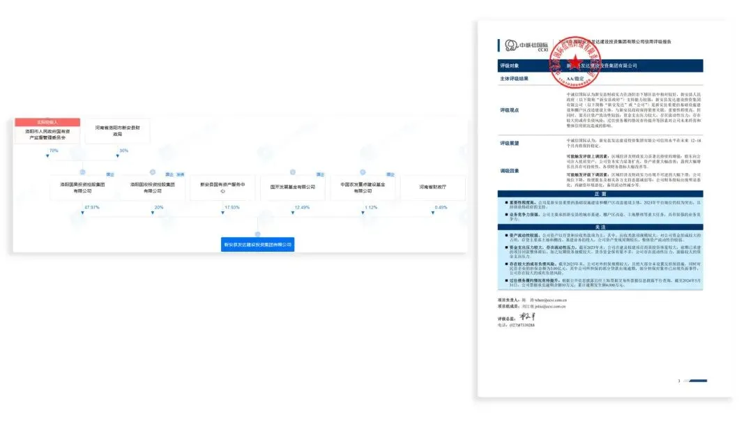 ☀担保:新安县发达建设投资集团有限公司(AA),成立于2002年11月,注册资本20.49亿元人民币,是一家成立超20年的国有景企业,实控人为洛阳市国资委,主体信用评级AA,作为新安县规模最大的国有建设投资平台,在基建、地产、矿产及投资领域广泛布局,具备较强的项目运作能力。近年参与黛眉大道改造提升工程(投资金额为2.7亿元),宋村安置区项目(总建筑面积10.4万平方米)等市政重要项目。