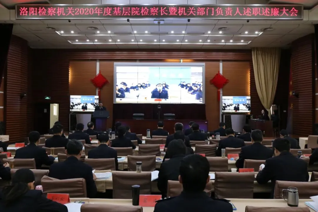 1月30日,洛阳市检察院召开2020年度基层院检察长暨机关部门负责人述职述廉大会,听取各基层院检察长、市院机关部门负责人述职报告,并进行民主评议和测评。市院党组书记、检察长吴志军和班子成员出席会议,党组成员、政治部主任郑卫国主持会议。