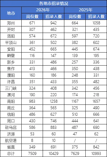 2026年河南省考招录岗位表