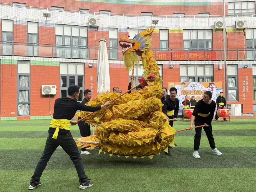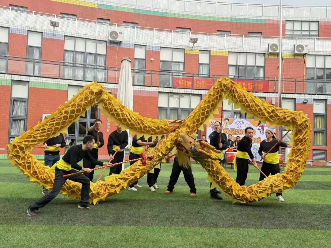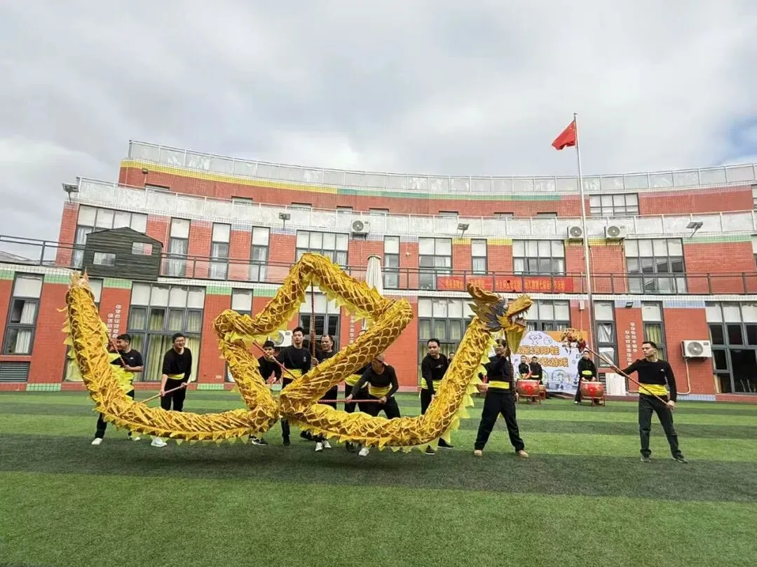 鼓声阵阵点燃赛场,龙影蹁跹唤醒童真。伴随着爸爸代表方阵的激昂鼓声和舞龙队精彩的表演率先点燃全场氛围,威风凛凛的舞龙将本土文化的魅力展现得淋漓尽致。