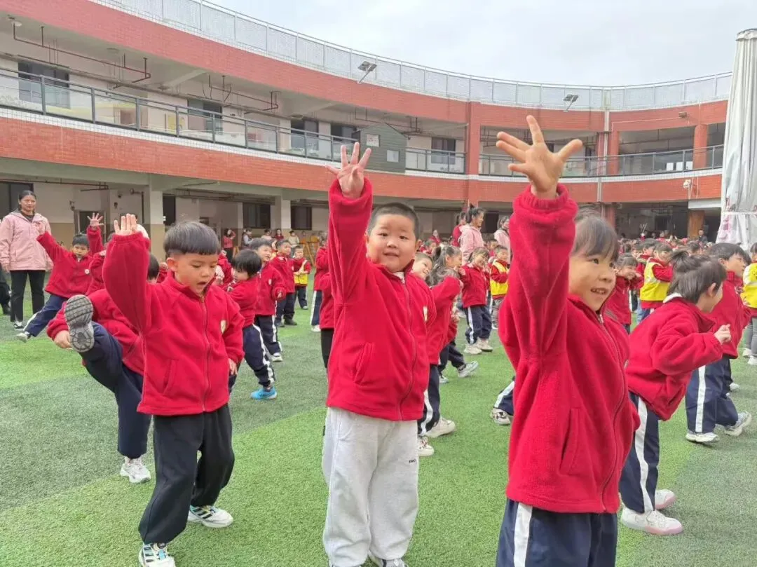 孩子们在老师的带领下精神饱满,踩着动感的节拍跃动热身,在欢快的节奏里满是对孩子们的祝福,灵动的舞姿中藏着满满的爱意,为整场运动节注入了满满的元气与暖意,也为接下来的赛事拉开了欢乐序幕。