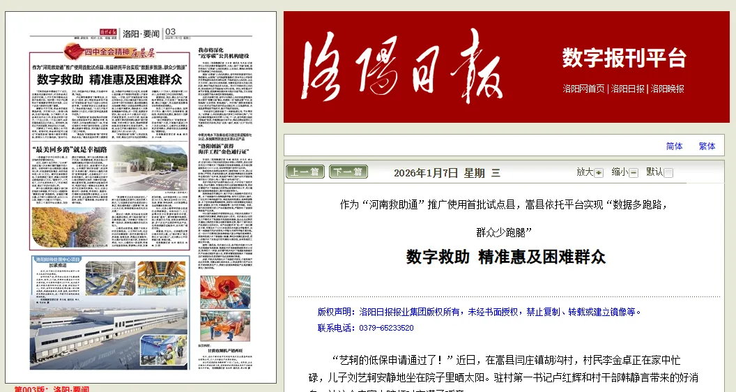 《洛阳日报》刊发嵩县做法:数字救助 精准惠及困难群众