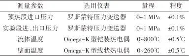 表1测量参数及仪表型号Table 1Measurement parameters and instrument type