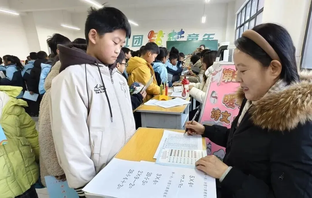 “冰雪口算滑道车” 驶入数学的极速赛道,开启一场紧张刺激的口算比拼。老师出示的口算题卡,如同雪地上的障碍标识,孩子们凝神聚气,让数字在脑海中快速跳跃、运算在冰雪滑道上,孩子们全神贯注、快速应答,在趣味比拼中检验学习成效,感受数学运算的奇妙乐趣。