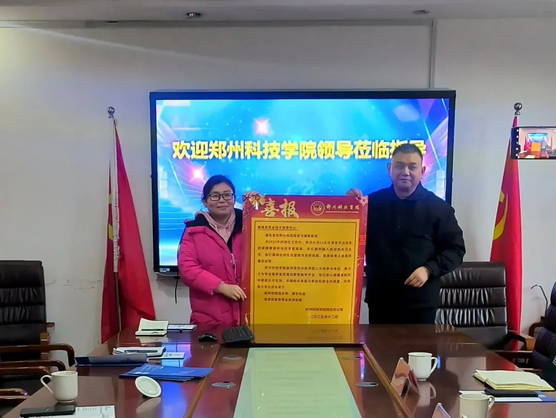 座谈会结束后,郑州科技学院汤德钱处长还向我校送上了招生喜报。