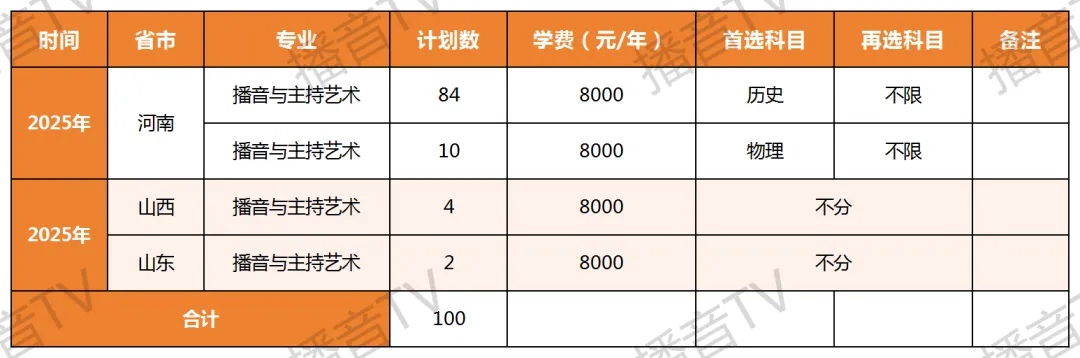 安阳师范学院2025年播音与主持艺术专业各省招生计划