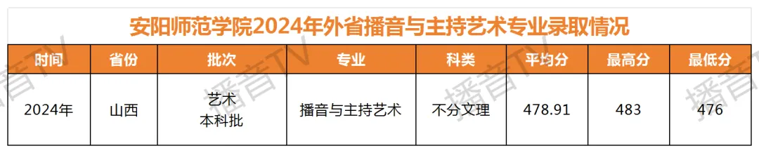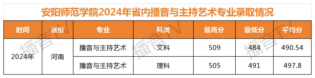 >安阳师范学院2024年播音与主持艺术专业各省录取分数线
