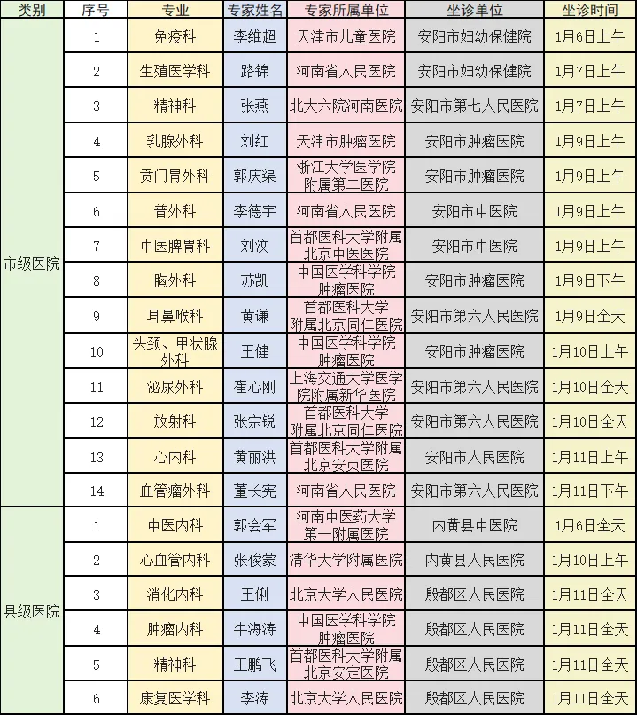 为满足我市人民群众多层次就医需求,建设高水平人才队伍,促进公立医院高质量发展,安阳市卫生健康委员会组织开展“名院名医伴飞计划”项目。通过市直医疗机构和国内知名医院专家团队的深度合作,引进了神经外科、神经内科、骨科、心内科(电生理)、呼吸内科、普外科(肝胆胰外科)、胸外科(肺)、乳腺外科、结直肠外科、中医儿科、中医脾胃科、中医骨伤科、心内科(冠心病)、耳鼻喉科、生殖医学科、精神科等专业国内第一梯队的名院名医,在市人民医院、市肿瘤医院、市中医院、市三院、市六院、市妇幼保健院、市七院等市直医疗机构定期坐诊、手术,旨在减轻我市群众外地就医的负担,让老百姓就近享受优质医疗资源,不断提升群众就医的获得感和幸福感。