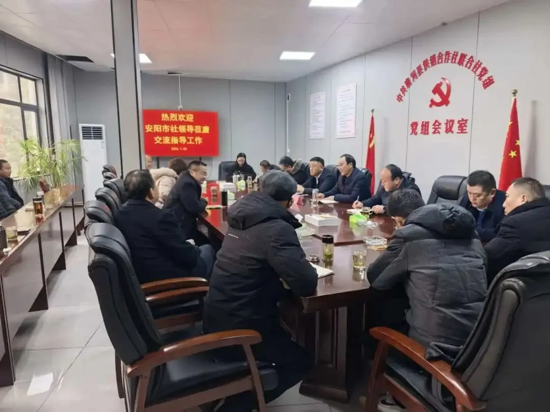 为深入落实全省供销合作社“县基一体化”管理暨“千县千社质量提升行动”现场推进会精神,学习先进地市工作经验,2026年1月4日—5日,安阳市供销合作社组织全市县级社主任赴南阳市唐河县供销社开展观摩学习活动。市社二级调研员李建明带队,各县级社主任、市社合作指导科相关人员参加。南阳市供销社理事会副主任王同刚、唐河县供销社理事会主任杨继相陪同调研。