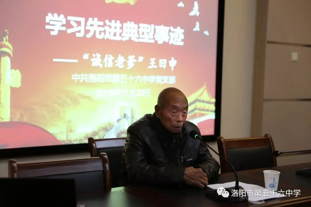 活动第一项,学习先进典型事迹——“诚信老爹”王曰申。77岁的王曰申是河南省洛阳市伊滨区诸葛镇道湛社区居民。他信守承诺,用20年的时间,靠四处打工替儿子还清了欠乡亲们的粮食钱,被乡亲们称为“诚信老爹”并荣获河南省诚信之星、洛阳市道德模范等称号,荣登“中国好人榜”。王曰申用朴素的情怀展示了诚实守信的光辉形象,在他的影响下,“人人重诚信、人人讲诚信”在伊滨区诸葛镇已蔚然成风。他的事迹也深深触动了老师们,使大家感受到了诚信的力量。