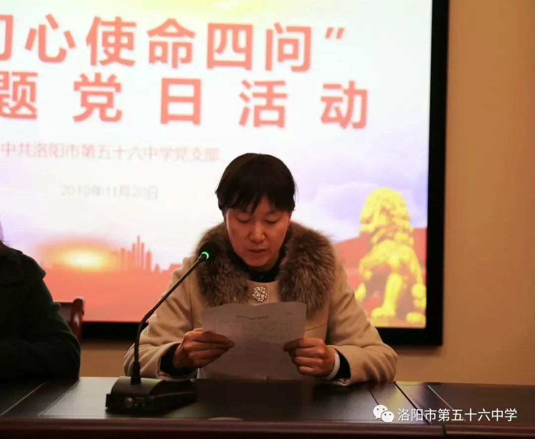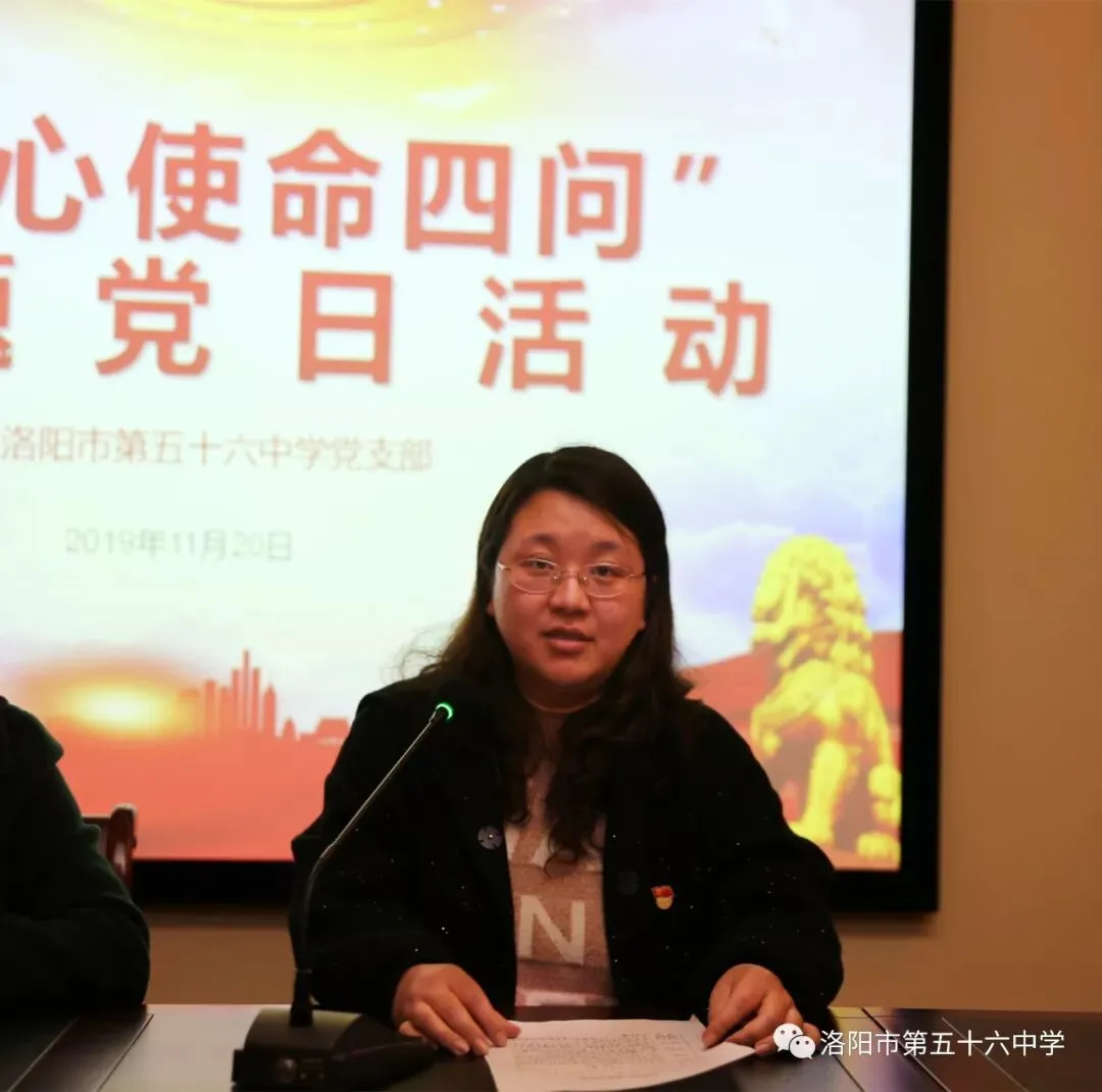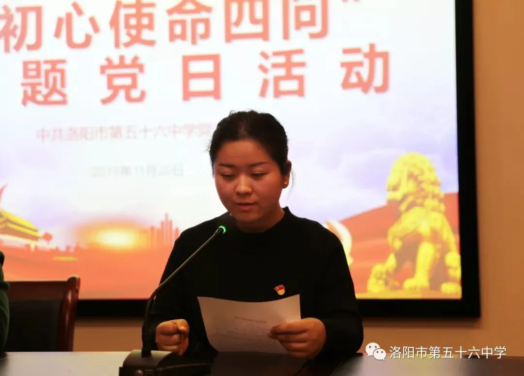 活动第三项,党员教师代表围绕“初心使命四问”进行发言。