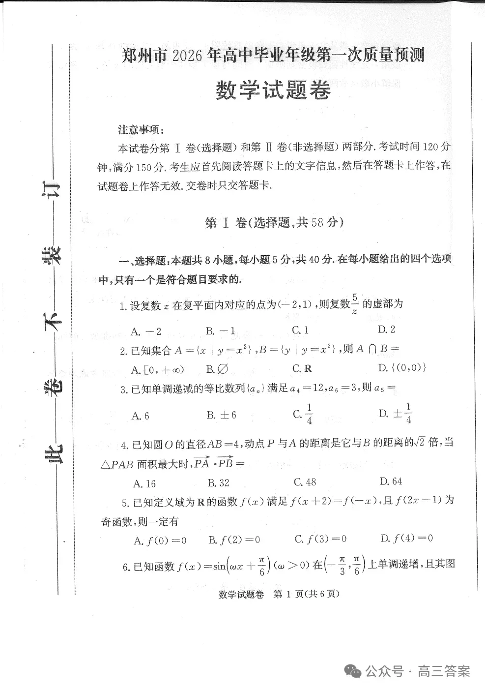 >【郑州一模】郑州市2026年高三第一次质量预测下载