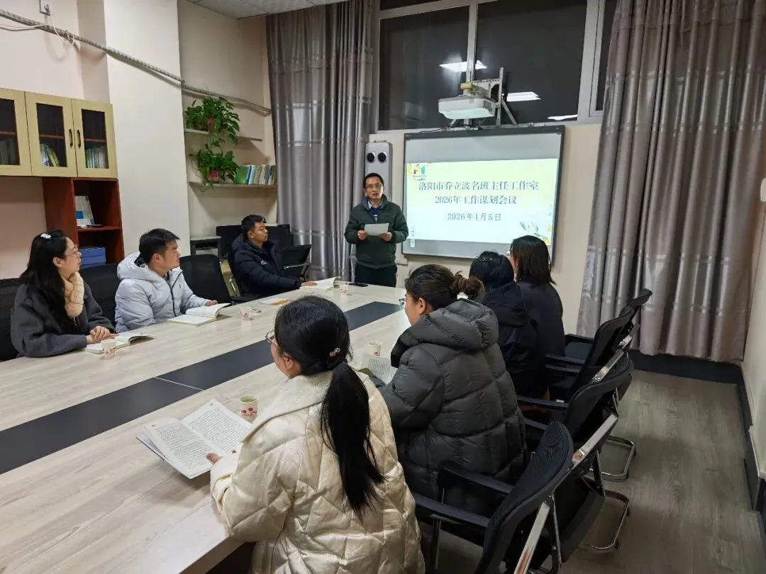 特色核心竞争力 活动主动走出去——洛阳市乔立波班主任工作室2026年工作规划2025年12月24日,工作室迎来了洛阳市教育局考核验收专家组的郝婉贞校长、韩明月主任、郭兴华老师三位专家,他们都对工作室予以极高评价,颇为赞赏工作室的亮点——培养能走上台授课分享、传播带班育人智慧的专家班主任,托举大家在班主任专业化道路上扎根成长。同时,专家组建议我们:坚持读书,这是专业成长的源头活水;提升研究力,把经历提炼为经验,把问题变为课题,惠及更多班主任同仁;线下活动更丰富,面对面交流中碰撞智慧,彼此照亮;辐射引领更扎实,扩大在西工区和洛阳市的引领辐射作用,带动更多本校、本区域的老师愿做班主任、会做班主任、做智慧型班主任。