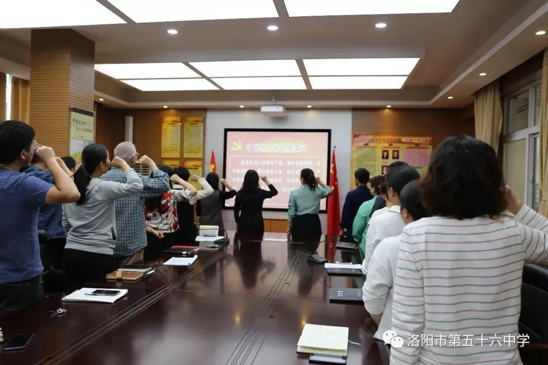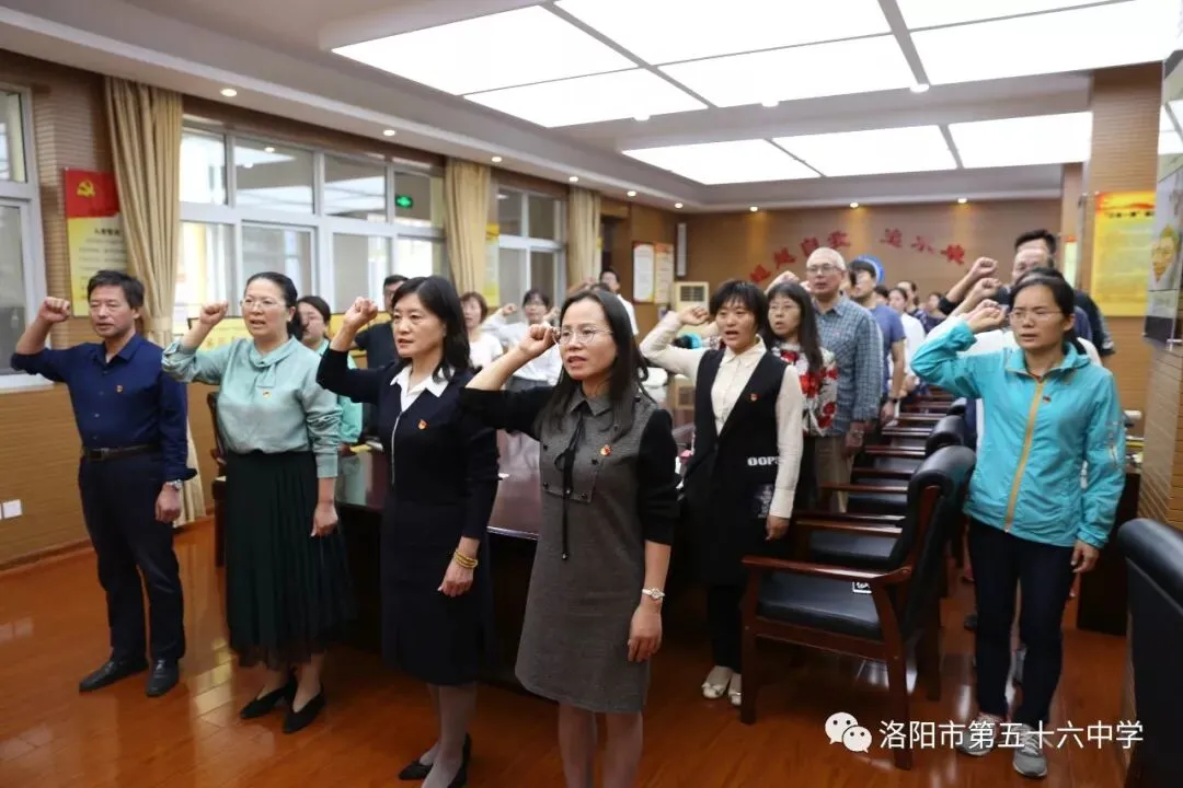 会议第一项,校长梁焕霞带领全体党员重温入党誓词,使各位党员同志不忘初心使命,牢记责任担当。