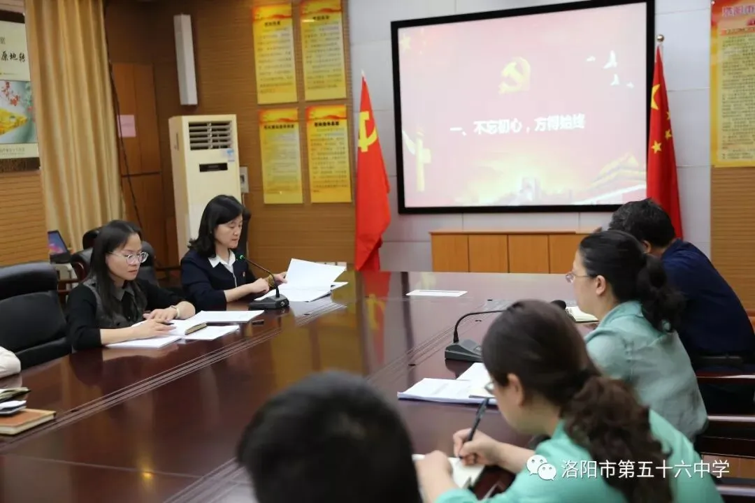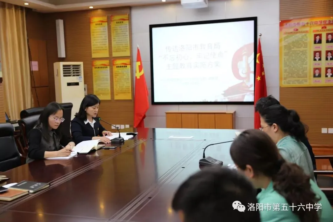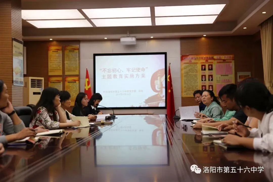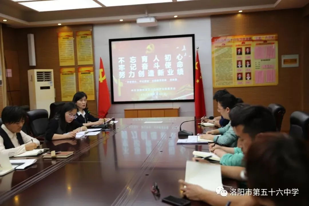 会议第三项,副校长徐冰传达学校“不忘初心 牢记使命”主题教育活动实施方案。根据习近平总书记在“不忘初心 牢记使命”主题教育工作会议上的重要讲话精神和洛阳市教育局的部署要求,结合学校实际开展“不忘初心 牢记使命”主题教育,要求全体党员认真抓好学习教育、调查研究、检视问题、整改落实四项重点措施的落实,确保取得实效。